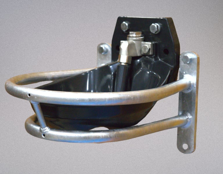Bebedouro com design elegante fabricado em aço inoxidável e plástico de alta resistência ao impacto na cor preta. Este bebedouro funciona a partir de uma válvula de toque nasal.