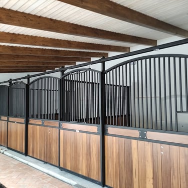 A estrutura e a grelha são fabricadas em ferro galvanizado a quente, havendo a possibilidade de ser lacado na cor que pretender. O revestimento pode ser em compósito de 32mm, altamente resistente ao impacto, ou bambu de 32mm para quem deseja um acabamento mais luxuoso.