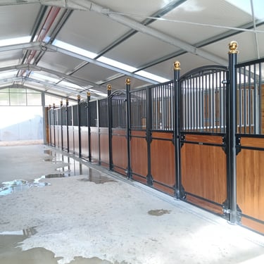 A estrutura é fabricada em ferro galvanizado a quente, havendo a possibilidade de ser lacado na cor que pretender, a grelha, para além de poder ter o acabamento em galvanizado ou lacado, pode, também, ser totalmente em inox. O revestimento pode ser em compósito de 32mm, altamente resistente ao impacto, ou bambu de 32mm para quem deseja um acabamento premium.