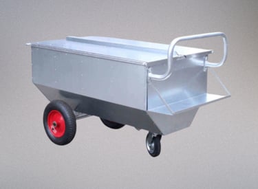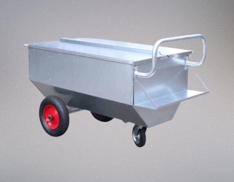 Carrinho para transporte de ração no seu estábulo fabricado em ferro galvanizado a quente, com capacidade para 350lts.