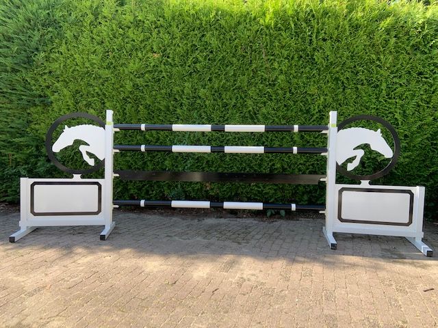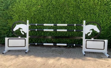 Obstáculos com design pré concebido (conforme imagens) com estrutura em alumínio, para uma maior durabilidade, e varas de 3,00mts. Incluem suporte de varas e bandeiras