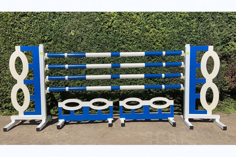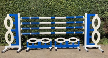 Obstáculos com design pré concebido (conforme imagens) com estrutura em alumínio, para uma maior durabilidade, e varas de 3,00mts. Incluem suporte de varas e bandeiras
