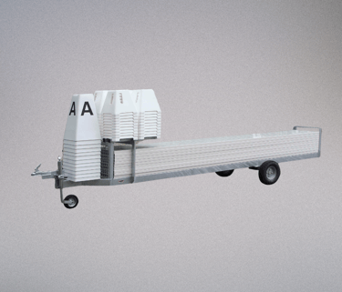 Este Trailer é o ideal para armazenar e transportar todos os acessórios da arena de ensino. As réguas e os cones podem ser colocados no reboque de forma rápida e segura, sendo que existe um espaço também para um conjunto de cones para letras na frente do trailer. Este trailer é facilmente rebocável por um mini-trator ou moto-4.