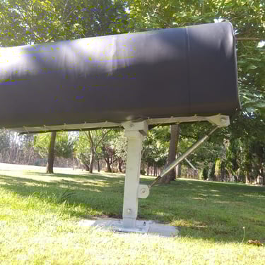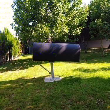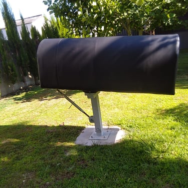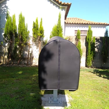 Semen collection dummy (phantom mare), made of iron, coated with high-density foam and covered in synthetic leather. Mounted on a height-adjustable stand with a stabilizing base.