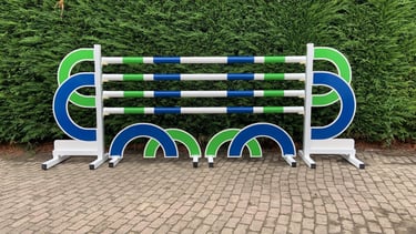 Obstáculos con diseño predefinido (ver imágenes), estructura de aluminio para mayor durabilidad y varas de 3,00 m. Incluye soportes para varas y banderines.