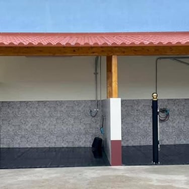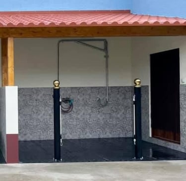 Soporte para ducha fabricado en hierro galvanizado en caliente, incluye manguera y pistola tipo ducha. Ideal para su zona de baño.