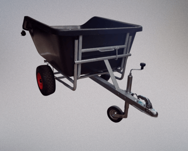 Brouette avec attelage pour une utilisation dans votre écurie, conçue pour faciliter vos tâches, en noir, fabriquée avec des matériaux de haute qualité, capacité de 600 litres.