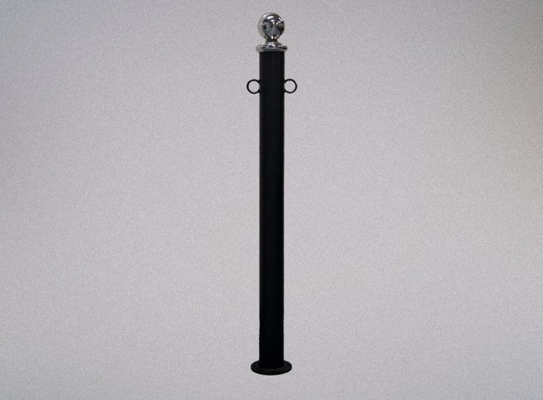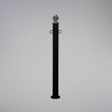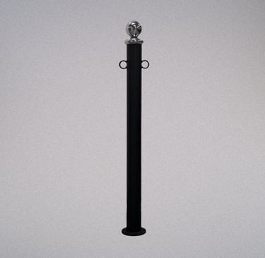 Poste de atar de ferro galvanizado a quente e lacado de alta durabilidade com 2 pontos de amarração. Inclui bola de inox e base prateada (conforme imagem), existe a possibilidade de trocar o acessório no topo (sujeito a alteração do preço)