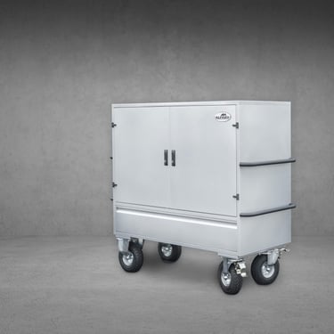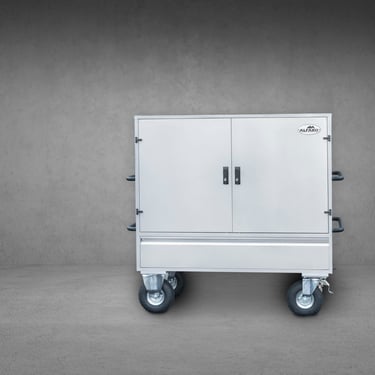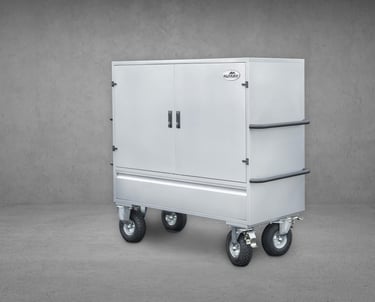 Dimensões: 1405mm de Altura por 1525mm de largura (com pegas) e 630mm de profundidade, com um peso de 120Kg